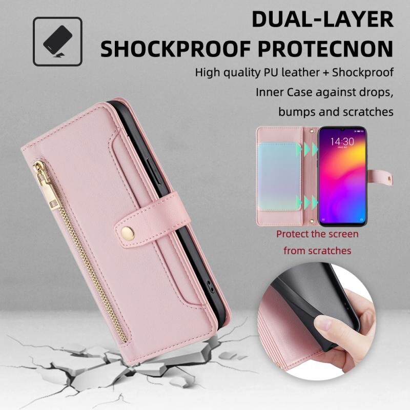 2. Λειτουργία πορτοφολιού πολλαπλών καρτών: Θήκες για κάρτες και διαμέρισμα με φερμουάρ για την αποθήκευση των πιστωτικών σας καρτών, μετρητών ή μικρών σημειώσεων για καθημερινή χρήση.