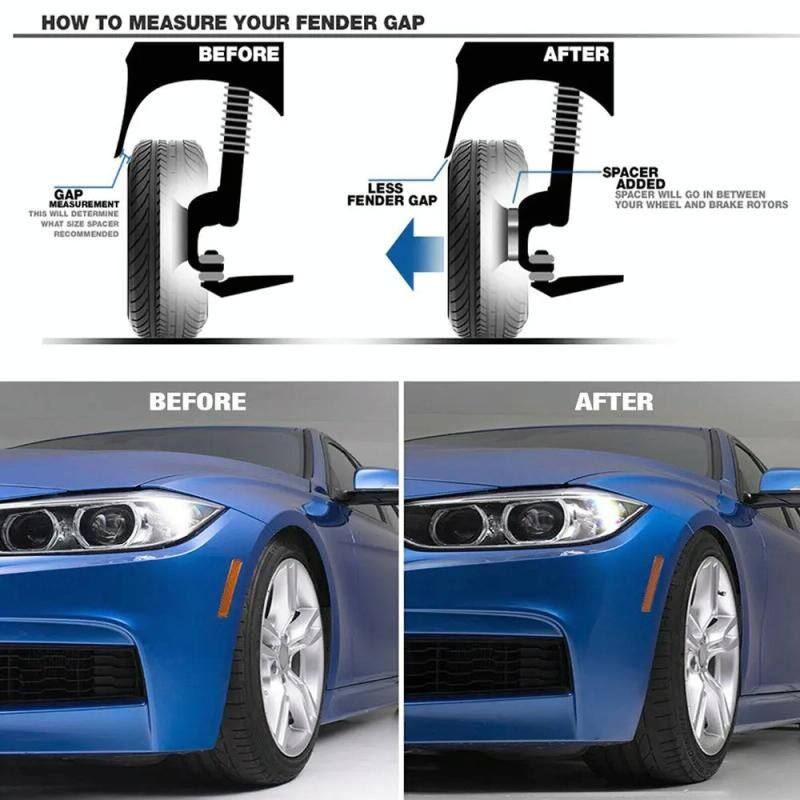 3. Τα διαχωριστικά τροχών αυξάνουν την απόσταση των ελαστικών και επιλύουν το κενό μεταξύ των τροχών όταν έρχονται σε επαφή με τους αμορτισέρ ή τις δαγκάνες φρένων. Τα οχήματα μπορούν να εφοδιαστούν με πιο φαρδιά, μεγαλύτερα ή ελαστικά υψηλής πρόσφυσης για να κάνουν το όχημά σας πιο επιθετικό.
