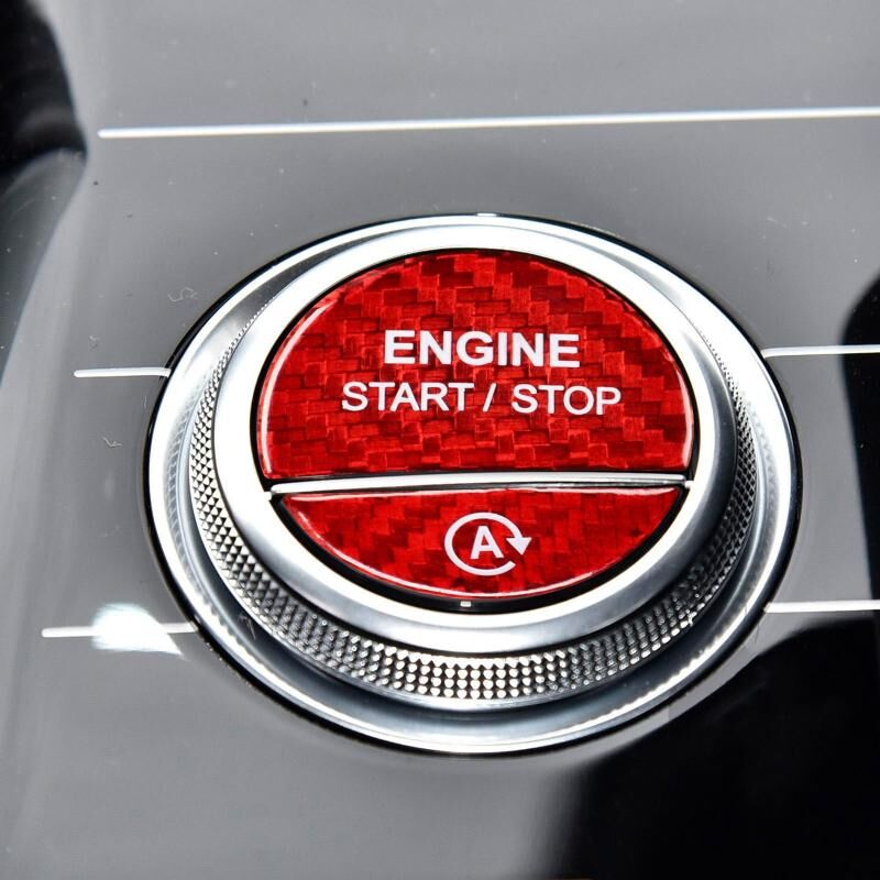 For Mercedes-Benz C/S Class 2022 Style Car Carbon Fiber One-click Start Button Decorative Sticker,Left and Right Drive Universal (Red)
