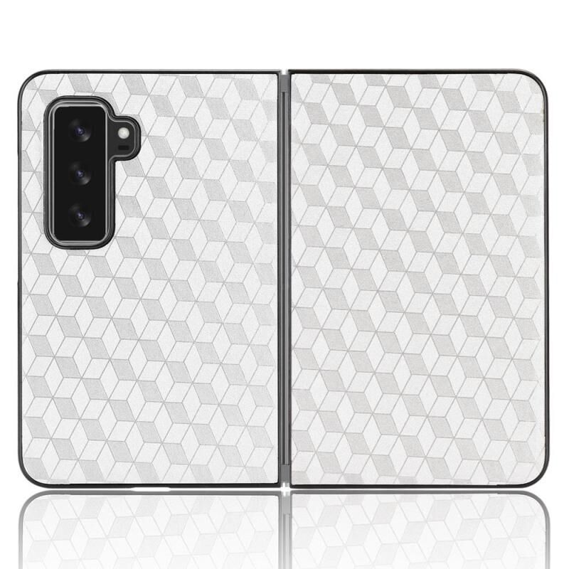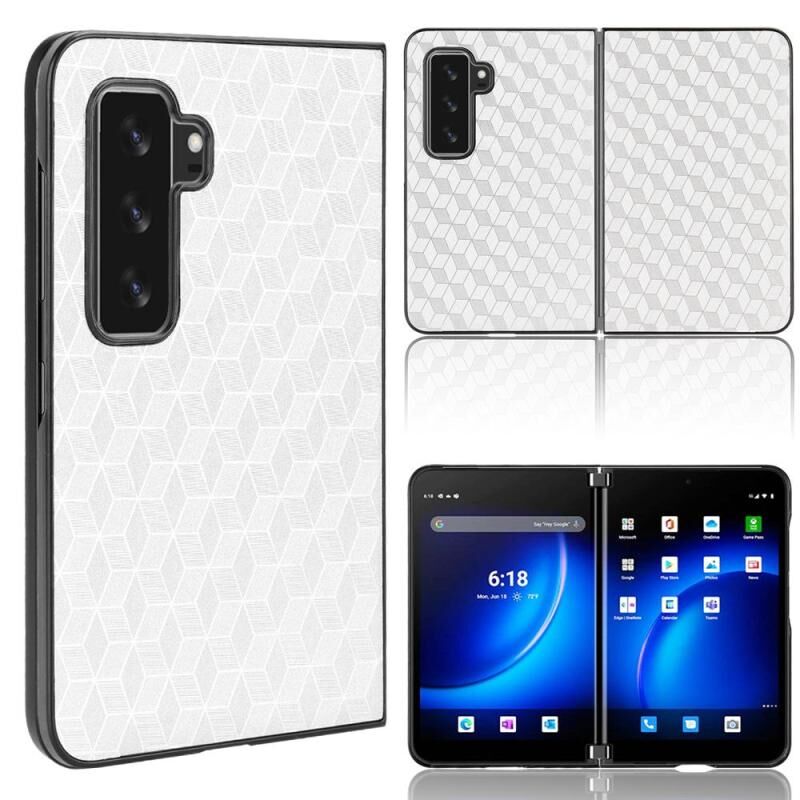 For Microsoft Surface Duo 2 Cubic Grid Texture Leather Back Cover Phone Case(Silver)