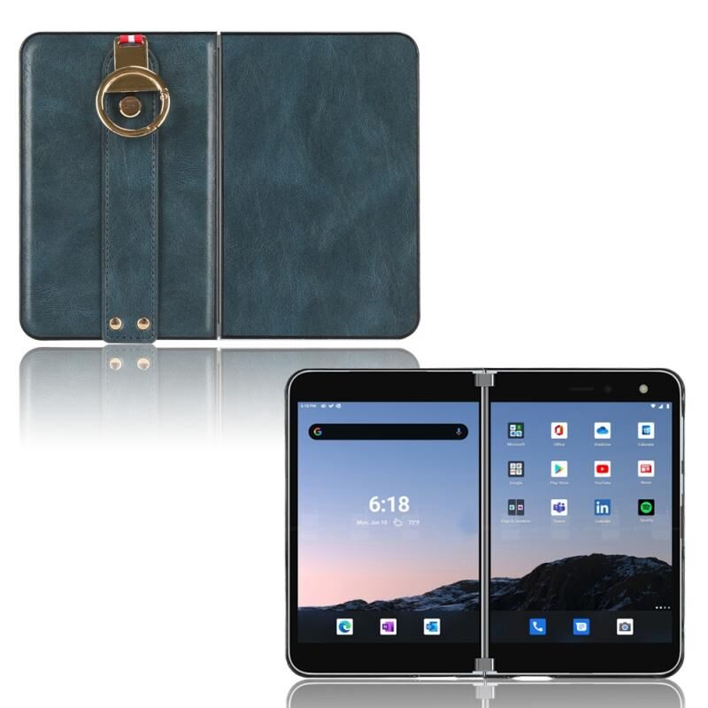 For Microsoft Surface Duo Wristband Leather Back Phone Case(Blue)