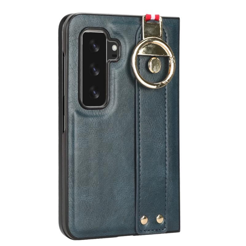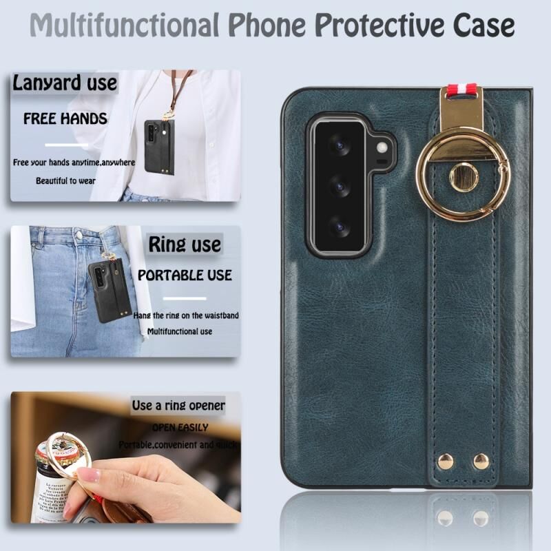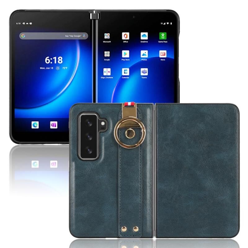 For Microsoft Surface Duo2 Wristband Leather Back Phone Case(Blue)