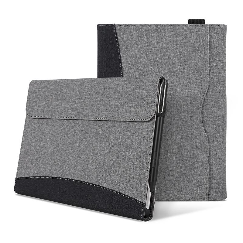 Θήκη Tablet από Δέρμα με Υφή Υφάσματος και Ραφές για Microsoft Surface Go 3 / 2 / 1 (Μαύρο Γκρι)