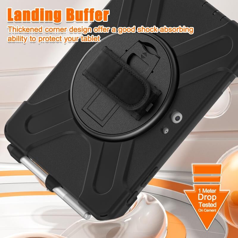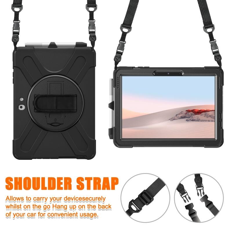 For Microsoft Surface Go 4 / 3 / 2 / 1 Shockproof Colorful Silicone + PC Protective Case with Holder & Shoulder Strap & Hand Strap & Pen Slot(Black)