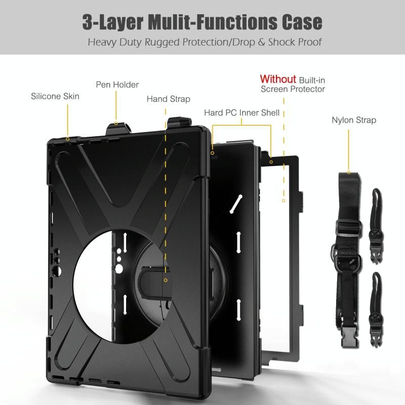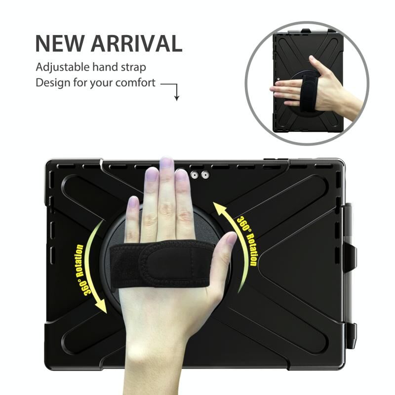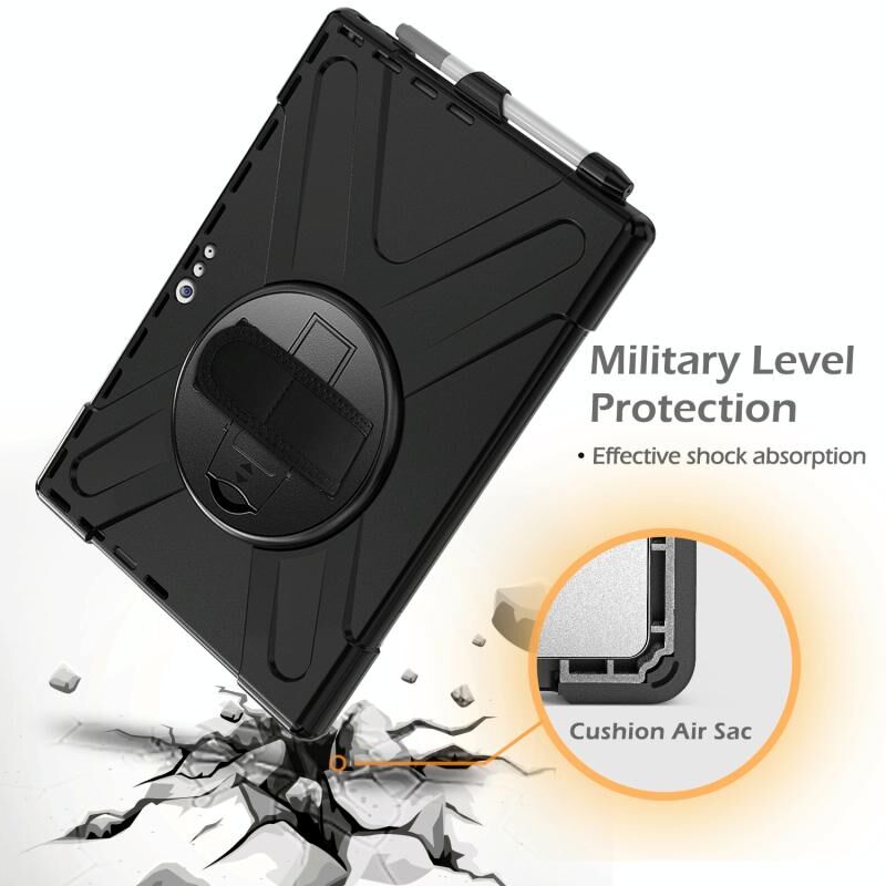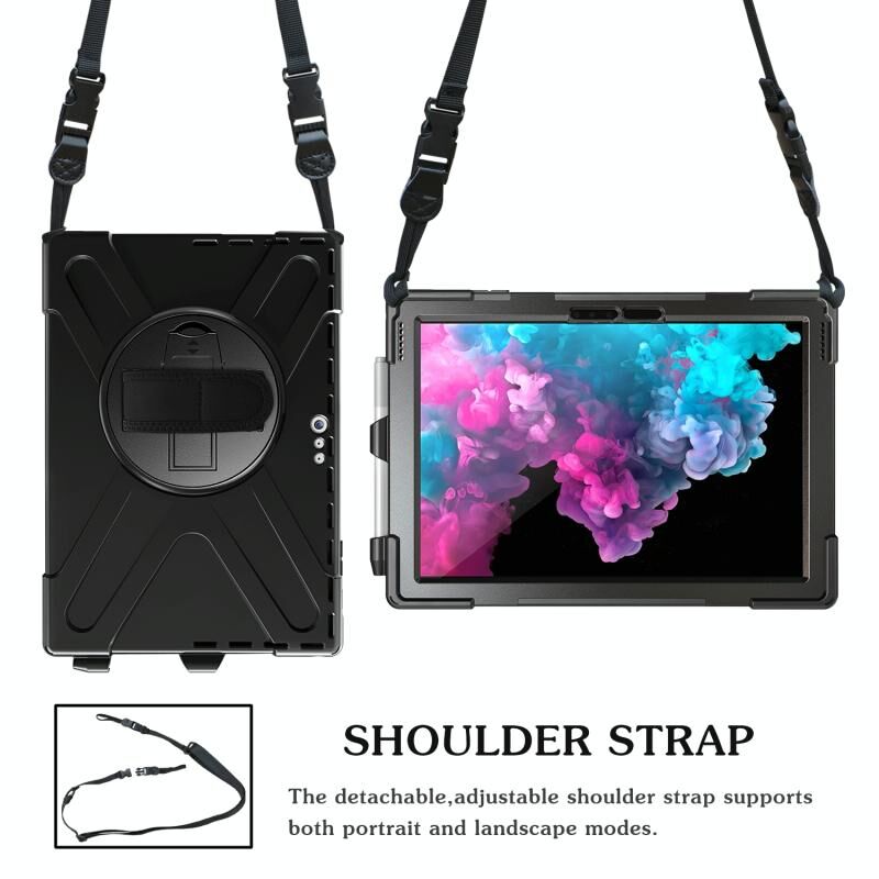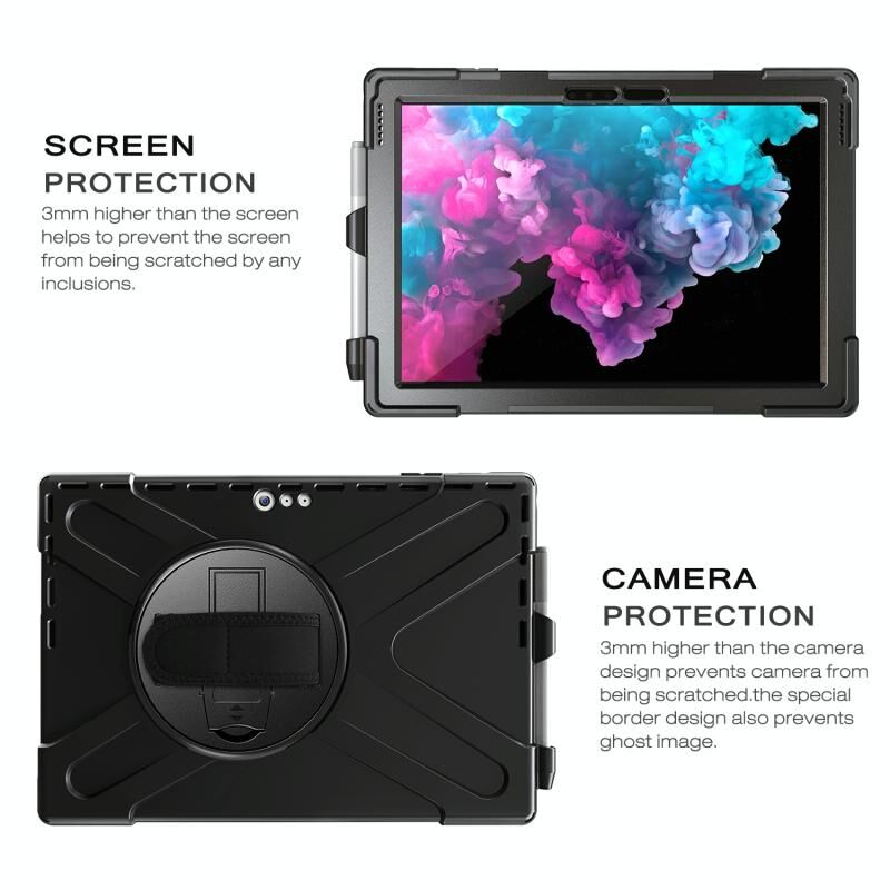 Για το Microsoft Surface Pro 4 / 5 Αδιάβροχη πολύχρωμη θήκη σιλικόνης + PC Προστατευτική θήκη με θήκη & λουράκι χειρός & υποδοχή στυλό (μαύρο)