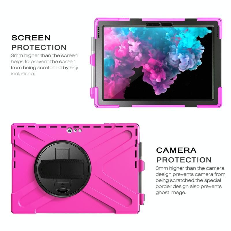 Για το Microsoft Surface Pro 4 / 5 Shockproof πολύχρωμη σιλικόνη + PC προστατευτική θήκη με θήκη & λουράκι χειρός & υποδοχή στυλό (Rose Red)