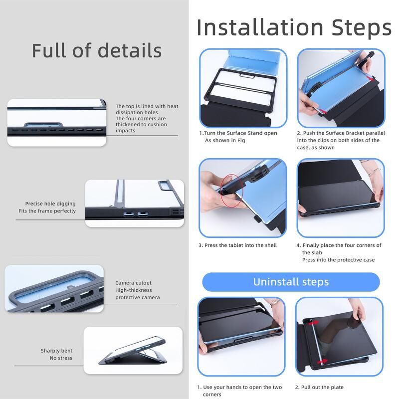 6. Auto Sleep / Wake: Better energy conservation & extending standby time when cover stays close to the screen and Easy access to all buttons and ports without disassembling the tablet from case.