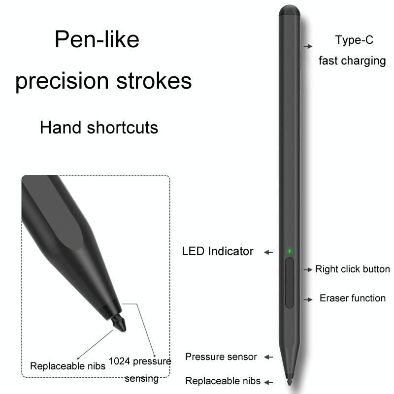 Packing list: stylus pen x 1, Type-C cable x 1, H nib x 1, 2H nib x 1