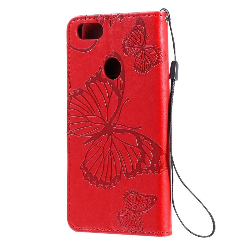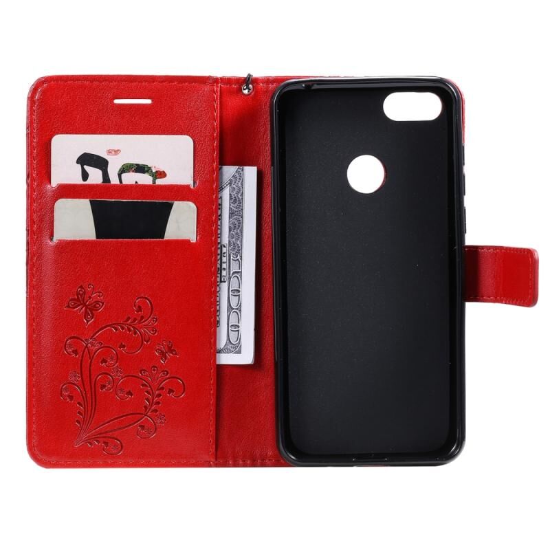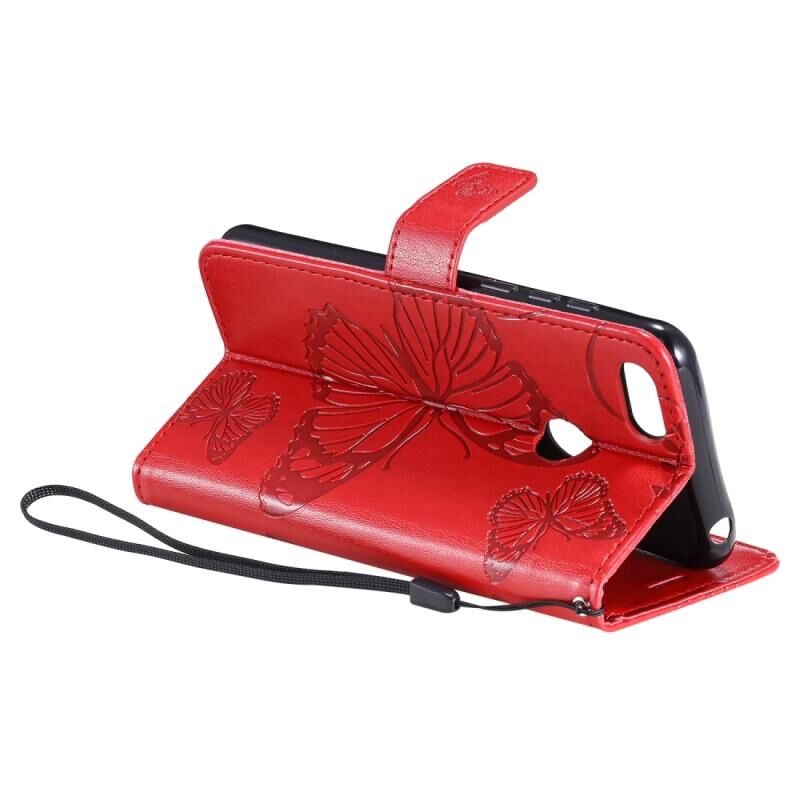 Θήκη για Motorola E6 Play με εκτυπωμένο σχέδιο πεταλούδας, οριζόντια αναδίπλωση από δερματίνη PU με βάση στήριξης, θήκες για κάρτες, πορτοφόλι & λουρί (Κόκκινο)