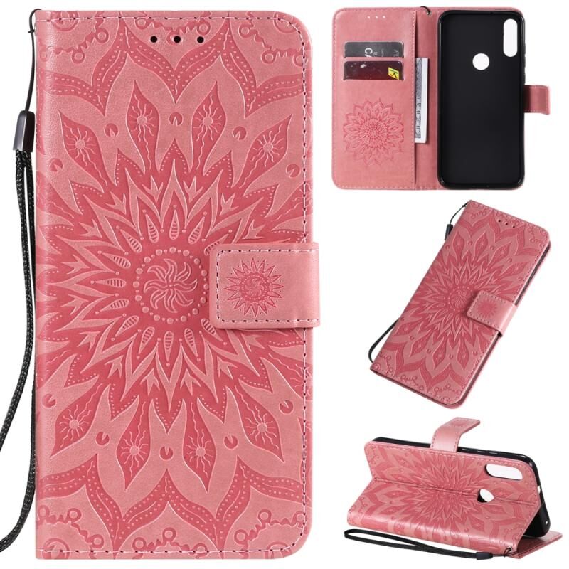 Θήκη για Motorola E7 με εκτυπωμένο σχέδιο ηλίανθου, οριζόντια αναδίπλωση, από δερματίνη PU με βάση στήριξης, θήκες για κάρτες, πορτοφόλι & λουρί (ρόζ)