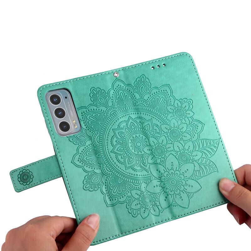 Για Motorola Edge 20 7-πέταλο λουλούδια ανάγλυφο οριζόντια Flip δερμάτινη θήκη τηλεφώνου με θήκη & υποδοχές για κάρτες (πράσινο)