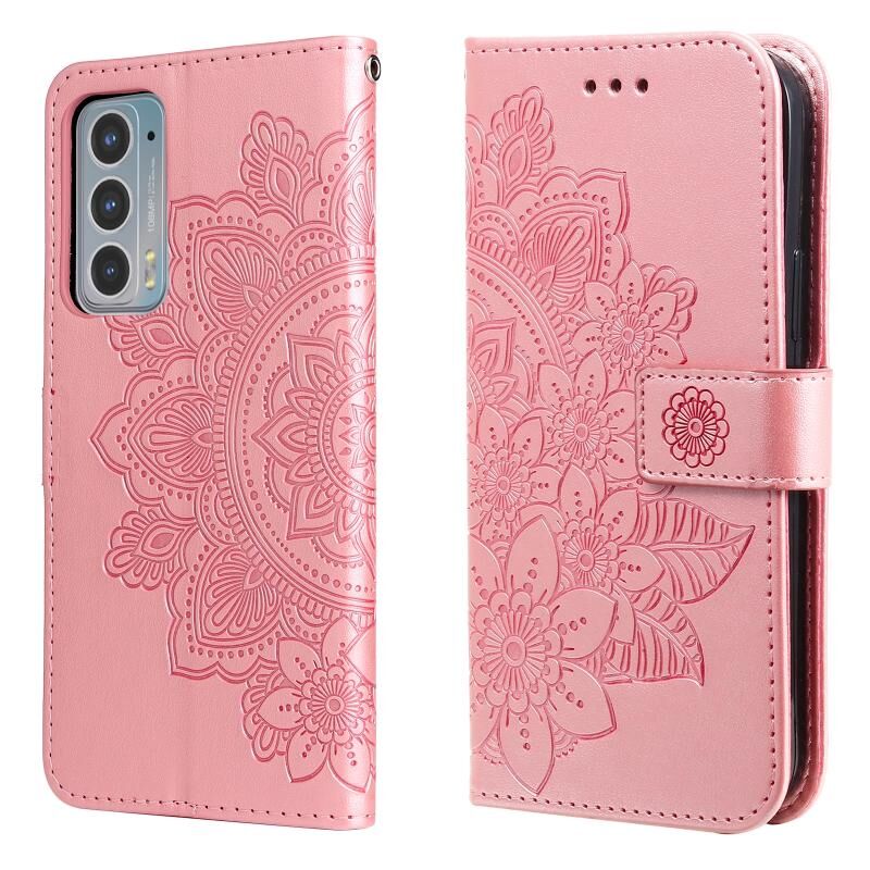 Για Motorola Edge 20 7-πέταλο λουλούδια ανάγλυφο οριζόντια Flip δερμάτινη θήκη τηλεφώνου με θήκη & υποδοχές για κάρτες (Rose Gold)