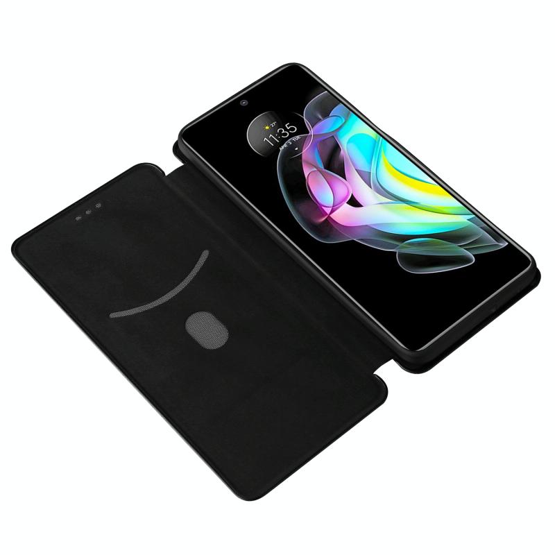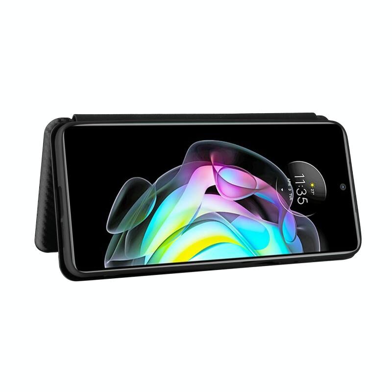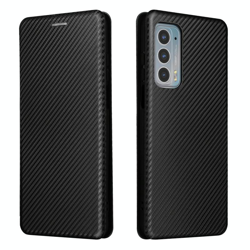 Θήκη για Motorola Edge 20, Υφή Άνθρακα, Οριζόντια, Flip, TPU + PC + Δερμάτινη (PU) με Θήκη Καρτών (Καφέ)