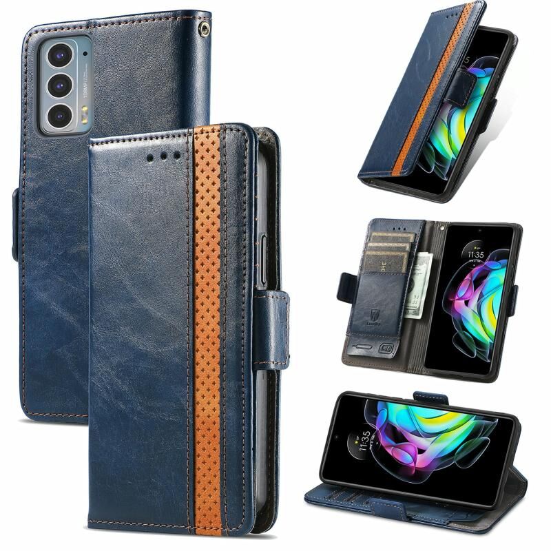 Για Motorola Edge 20 CaseNeo Business Splicing Διπλή μαγνητική πόρπη οριζόντια Flip PU δέρμα υπόθεση με κάτοχο & υποδοχές για κάρτες & πορτοφόλι (μπλε)
