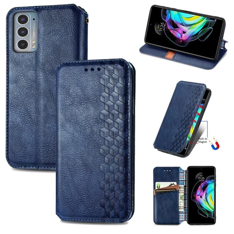 Για Motorola Edge 20 Cubic Grid Pressed Horizontal Flip Μαγνητική PU δερμάτινη θήκη με θήκη για κάρτες & υποδοχές & πορτοφόλι (μπλε)