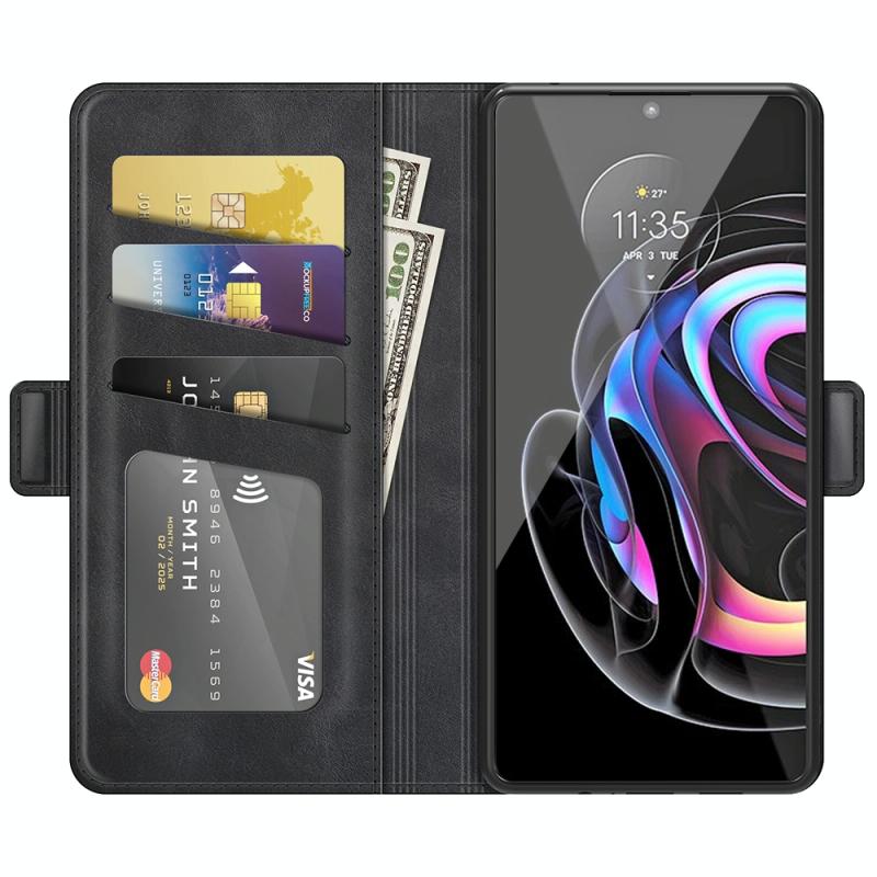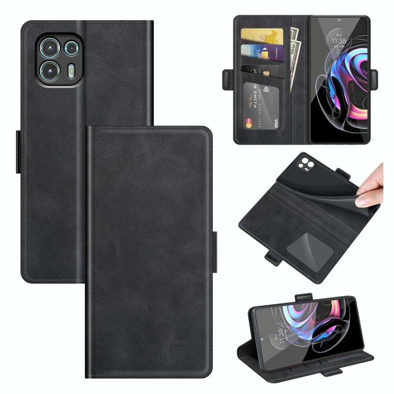 For Motorola Edge 20 lite 5G Dual-side Magnetic Buckle Horizontal Flip Phone Leather Case with Holder & Card Slots & Wallet(Black)