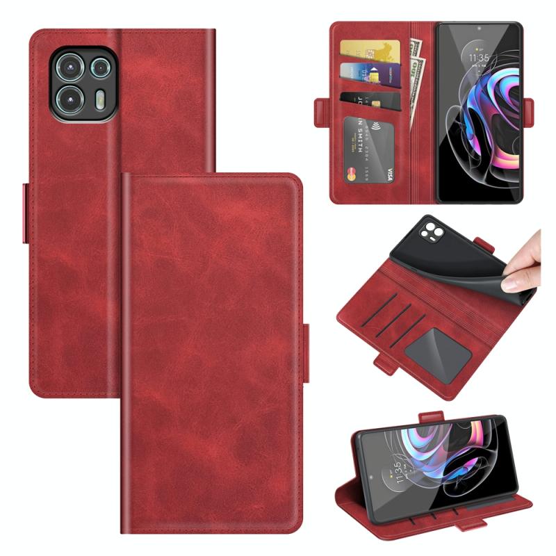 For Motorola Edge 20 lite 5G Dual-side Magnetic Buckle Horizontal Flip Phone Leather Case with Holder & Card Slots & Wallet(Red)