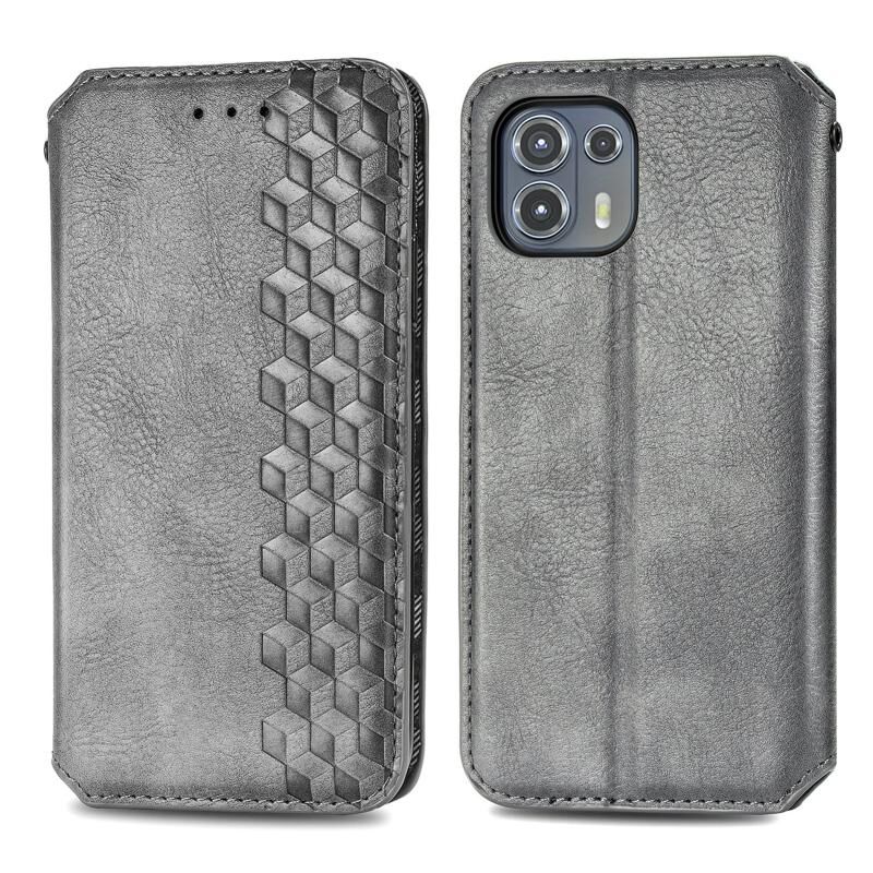 Για Motorola Edge 20 Lite Cubic Grid Pressed Horizontal Flip Μαγνητική PU δερμάτινη θήκη με θήκη & υποδοχές καρτών & πορτοφόλι (γκρι)