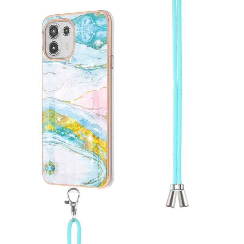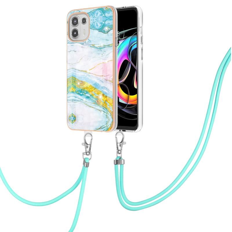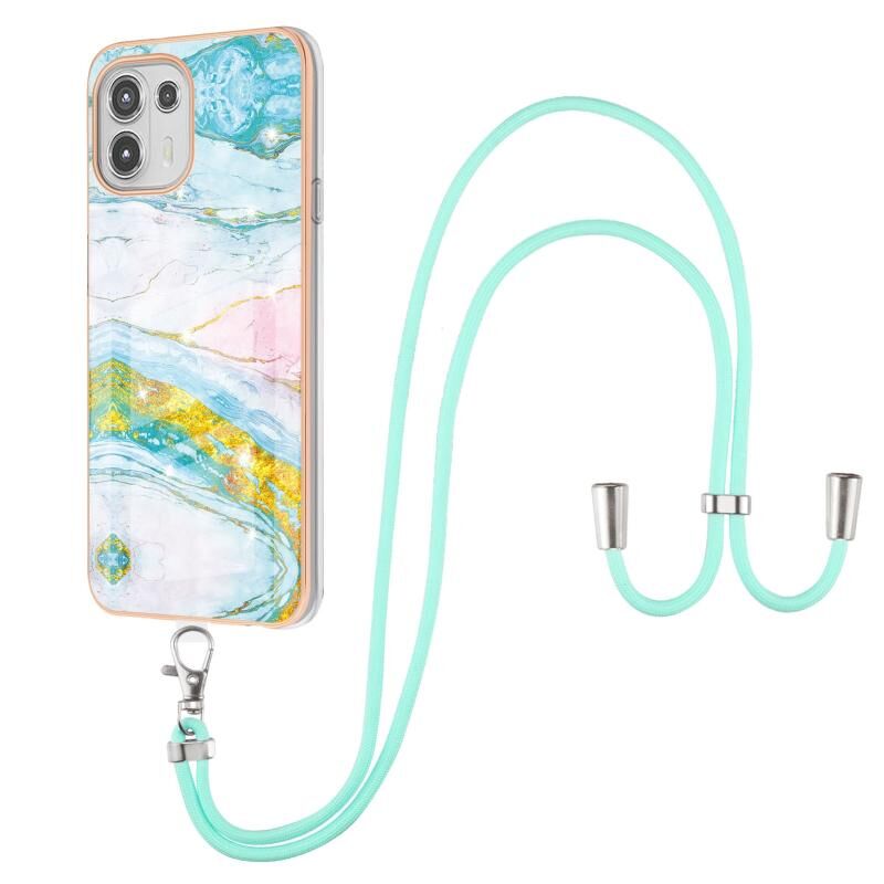 Θήκη προστασίας για Motorola Edge 20 Lite με γαλβανισμό, σχέδιο μαρμάρου IMD, από TPU ανθεκτικό στους κραδασμούς με λουρί λαιμού (Μωβ 002)