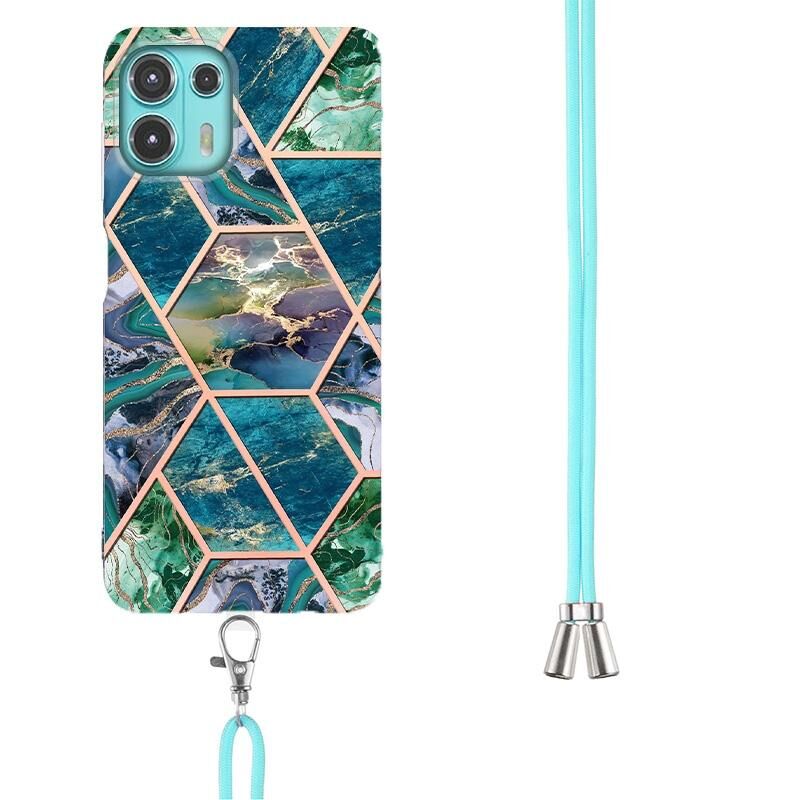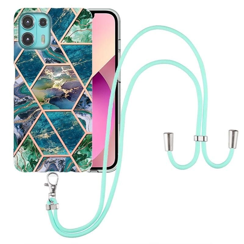 Θήκη κινητού τηλεφώνου TPU με γαλβανισμό και μαρμάρινη σύνθεση για Motorola Edge 20 Lite με κορδόνι (Μπλε πράσινο)
