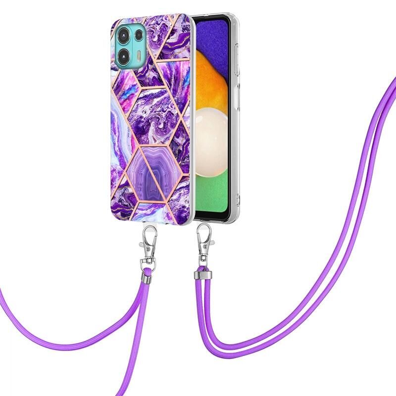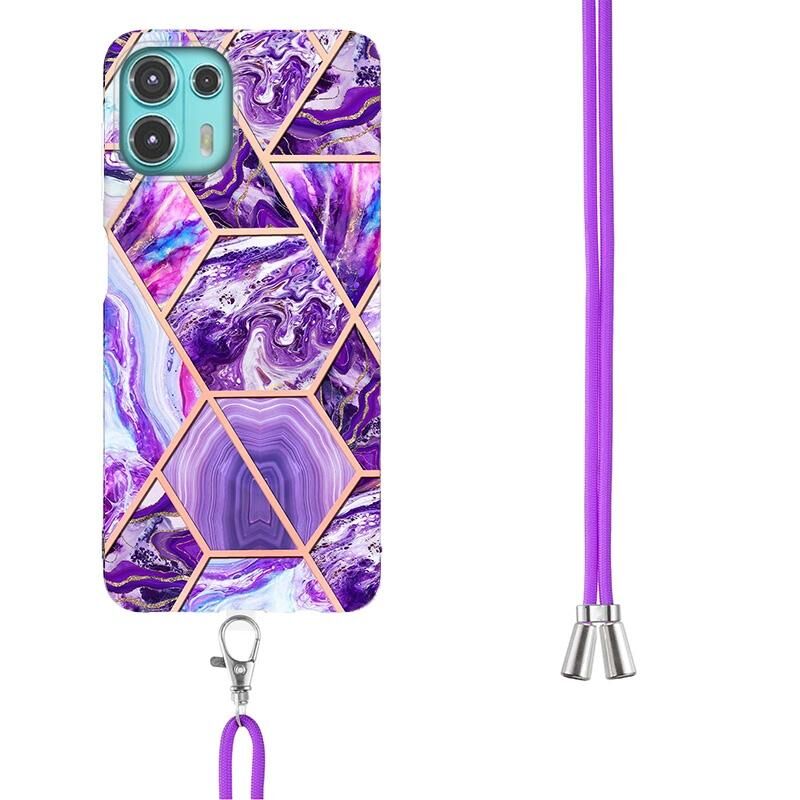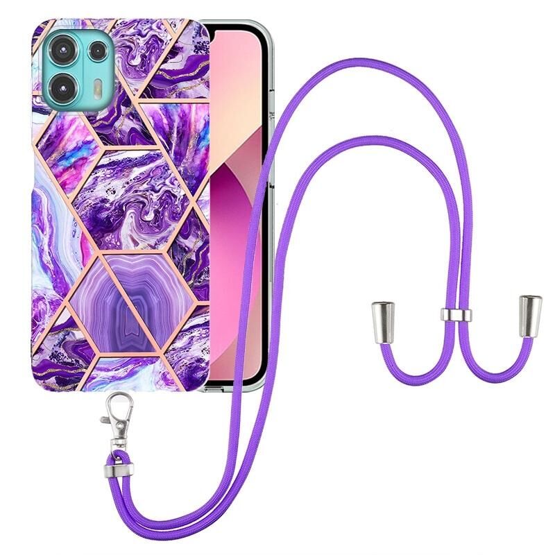 Θήκη κινητού τηλεφώνου TPU με γαλβανισμό και μαρμάρινη σύνθεση για Motorola Edge 20 Lite με κορδόνι (Σκούρο μωβ)