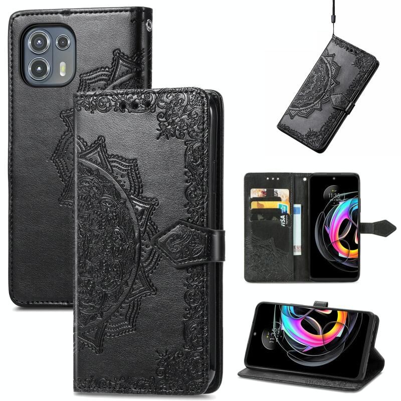Για Motorola Edge 20 Lite Mandala ανάγλυφο μοτίβο οριζόντια Flip δερμάτινη θήκη με θήκη & υποδοχές για κάρτες & πορτοφόλι & κορδόνι (μαύρο)