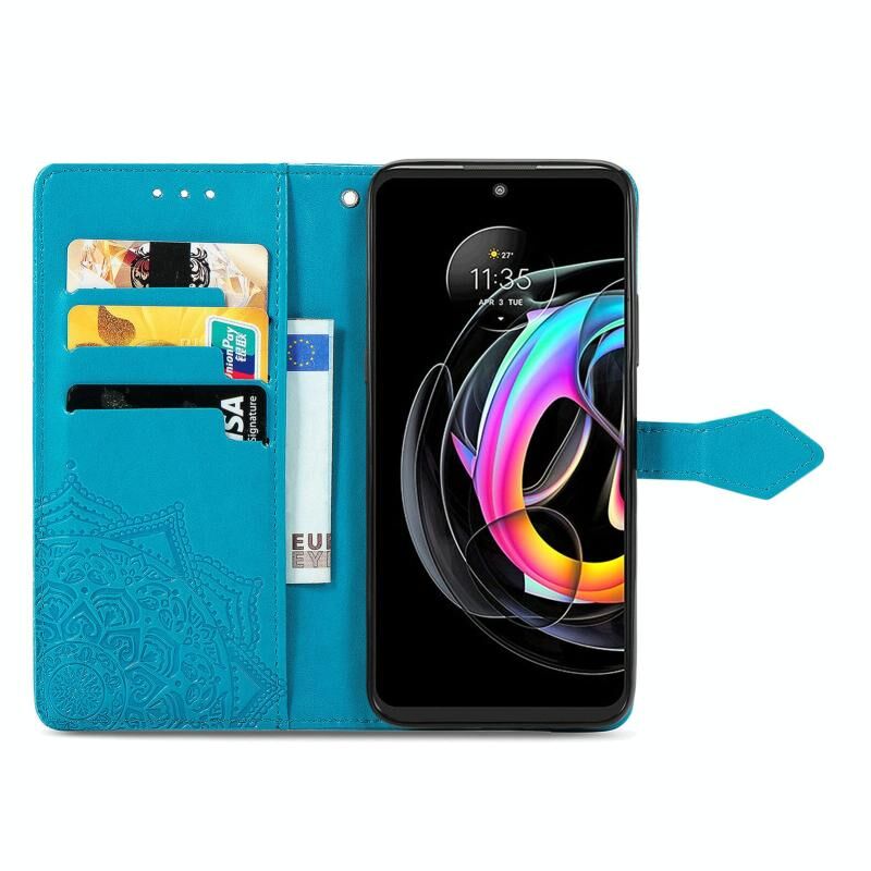Για Motorola Edge 20 Lite Mandala ανάγλυφο μοτίβο οριζόντια Flip δερμάτινη θήκη με κάτοχο & υποδοχές για κάρτες & πορτοφόλι & κορδόνι (μπλε)
