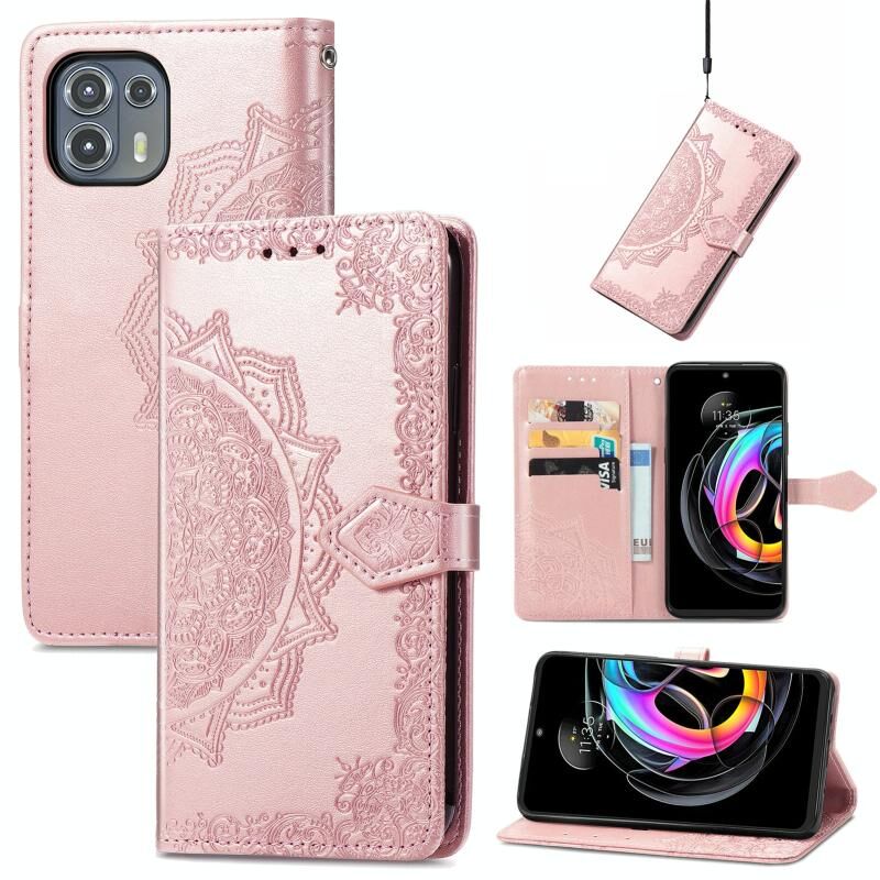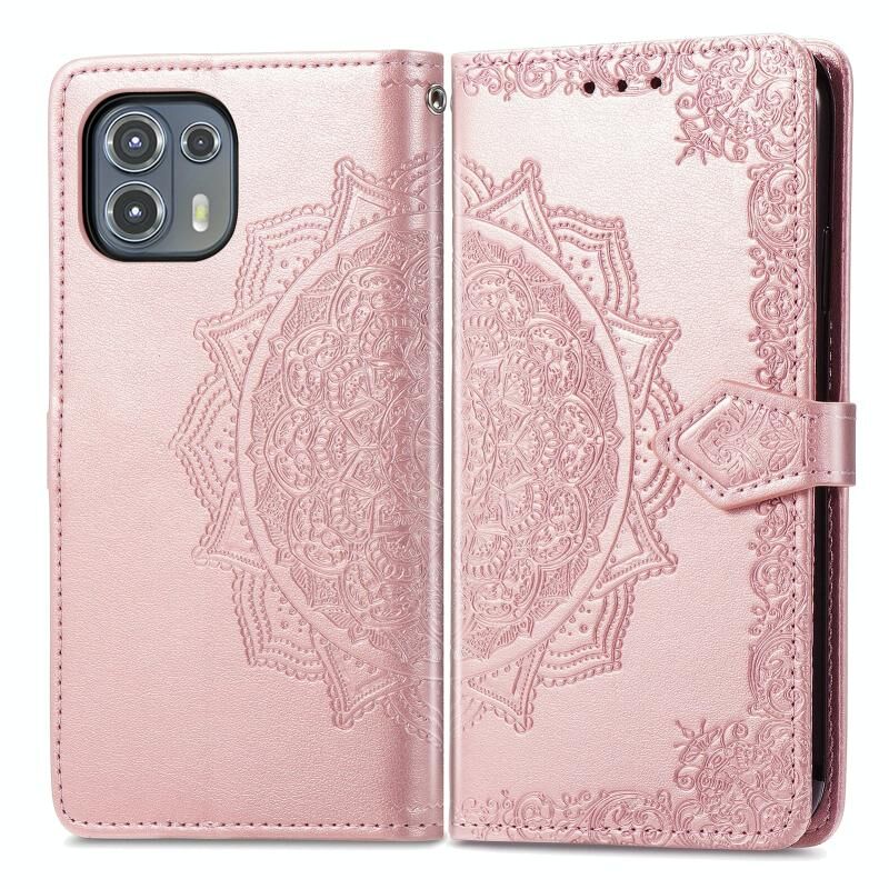 Για Motorola Edge 20 Lite Mandala ανάγλυφο μοτίβο οριζόντια Flip δερμάτινη θήκη με κάτοχο & υποδοχές για κάρτες & πορτοφόλι & κορδόνι (Rose Gold)