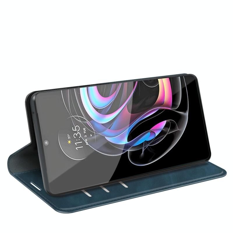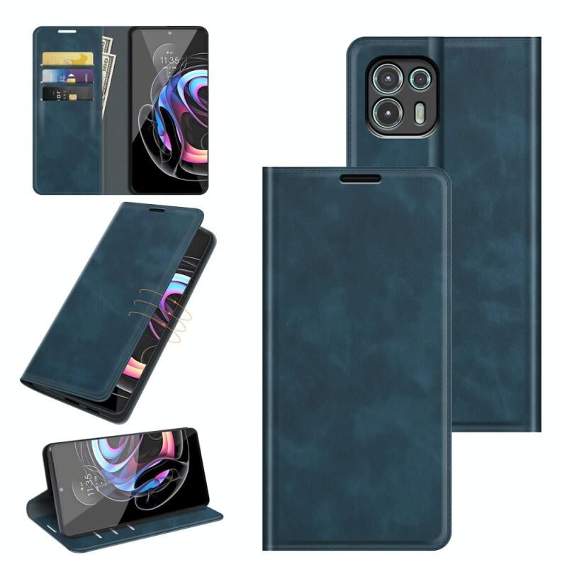 Για Motorola Edge 20 lite Retro-skin Business Μαγνητικό τηλέφωνο αναρρόφησης δερμάτινη θήκη με θήκη & υποδοχές καρτών & πορτοφόλι (σκούρο μπλε)