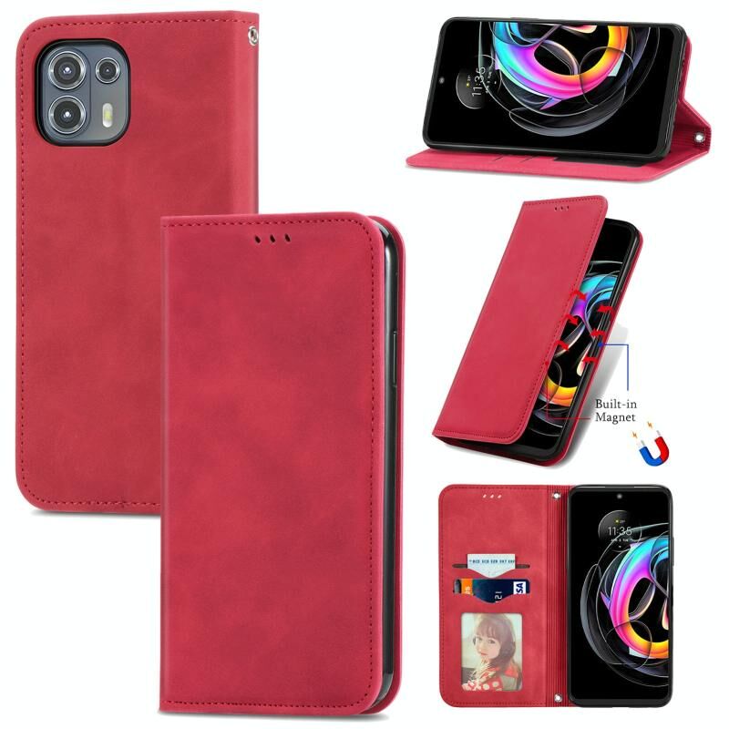 Για Motorola Edge 20 Lite Retro Skin Feel Business μαγνητική οριζόντια Flip δερμάτινη θήκη με κάτοχο & υποδοχές καρτών & πορτοφόλι & πλαίσιο φωτογραφιών (κόκκινο)