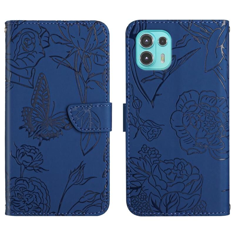 Θήκη κινητού τηλεφώνου από δέρμα με ανάγλυφο σχέδιο πεταλούδας και παιώνιας για Motorola Edge 20 Lite (Κόκκινο)