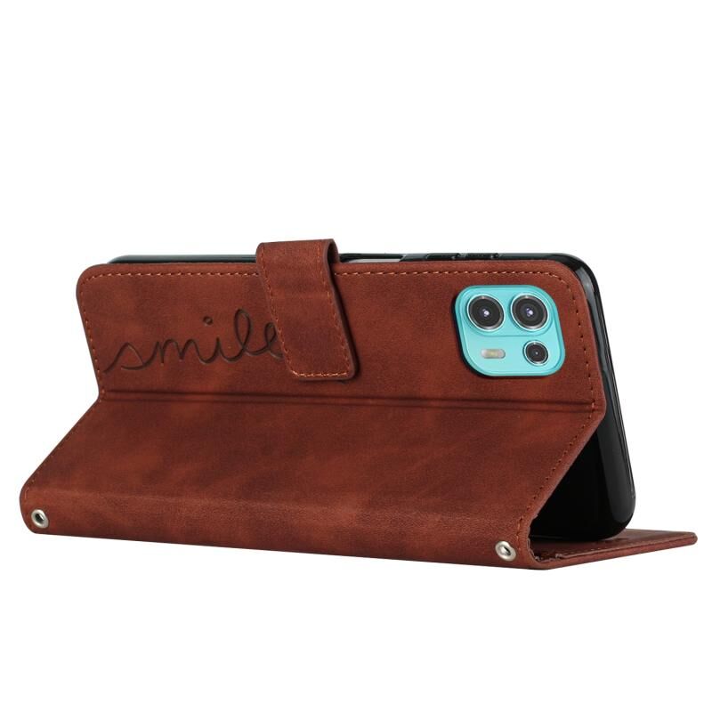 Για Motorola Edge 20 Lite δέρμα αίσθηση καρδιά μοτίβο δερμάτινη θήκη τηλεφώνου με κορδόνι (Καφέ)
