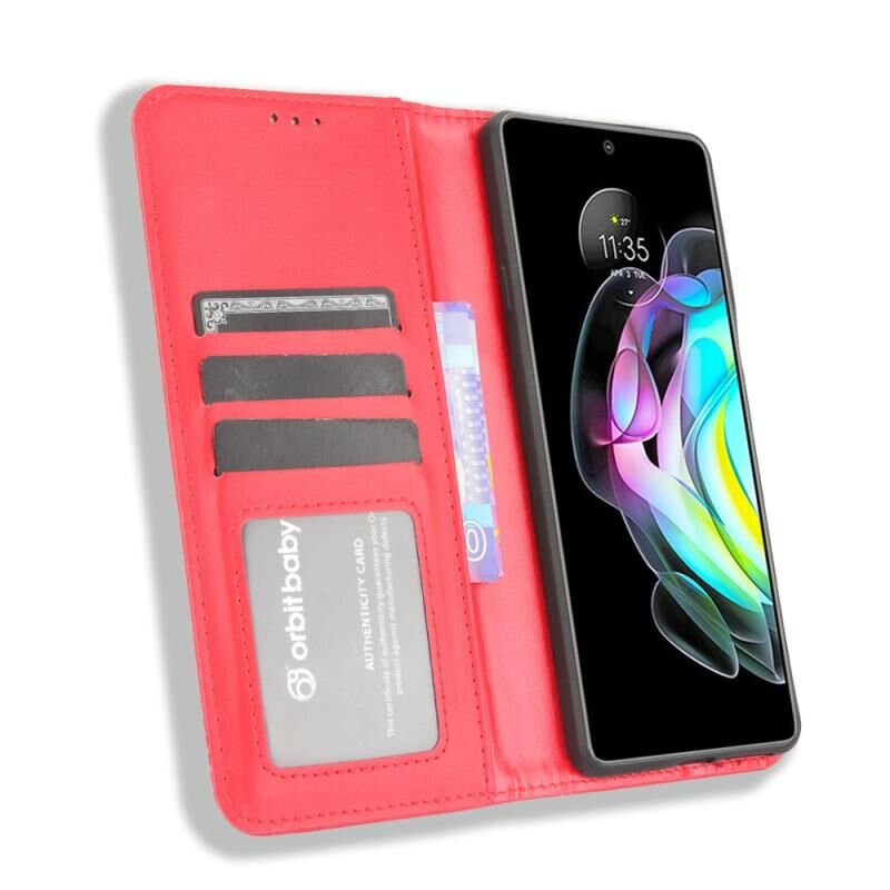 Για Motorola Edge 20 μαγνητική πόρπη ρετρό μοτίβο οριζόντια Flip δερμάτινη θήκη με κάτοχο & υποδοχή για κάρτες & πορτοφόλι (κόκκινο)