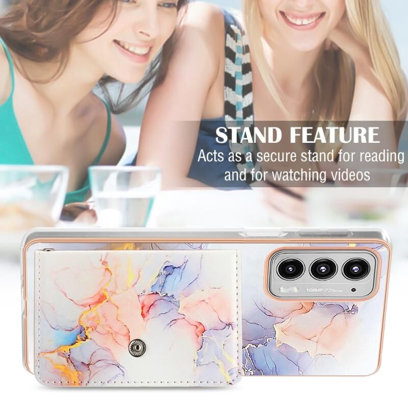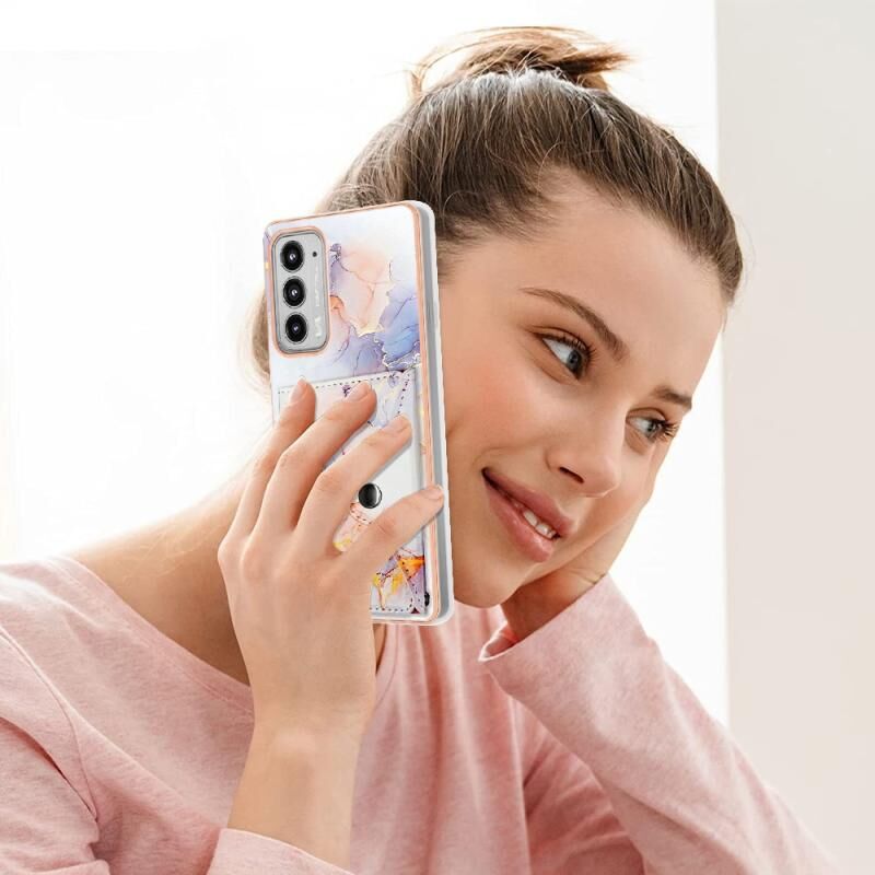 Θήκη κινητού τηλεφώνου Motorola Edge 20 με σχέδιο μαρμάρου IMD και θήκη κάρτας (Λευκό Γαλαξιακό Μάρμαρο)