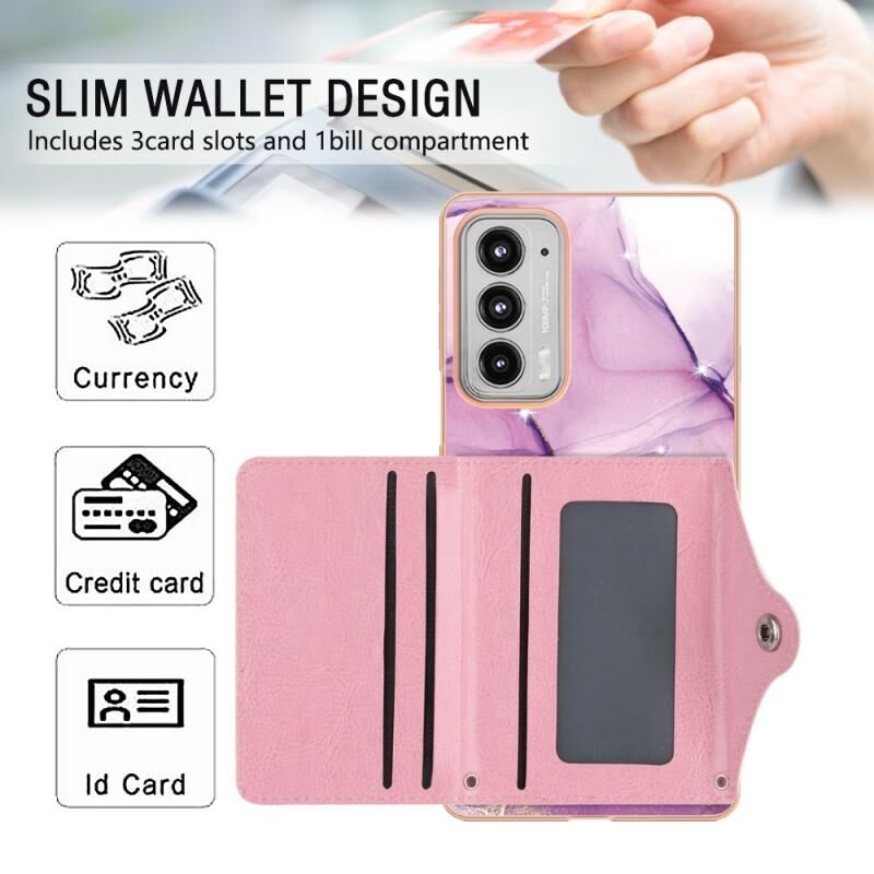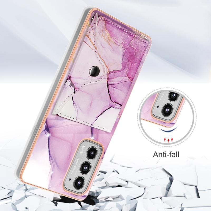 Θήκη κινητού τηλεφώνου Motorola Edge 20 με σχέδιο μαρμάρου IMD και θήκη κάρτας (Λευκό Γαλαξιακό Μάρμαρο)
