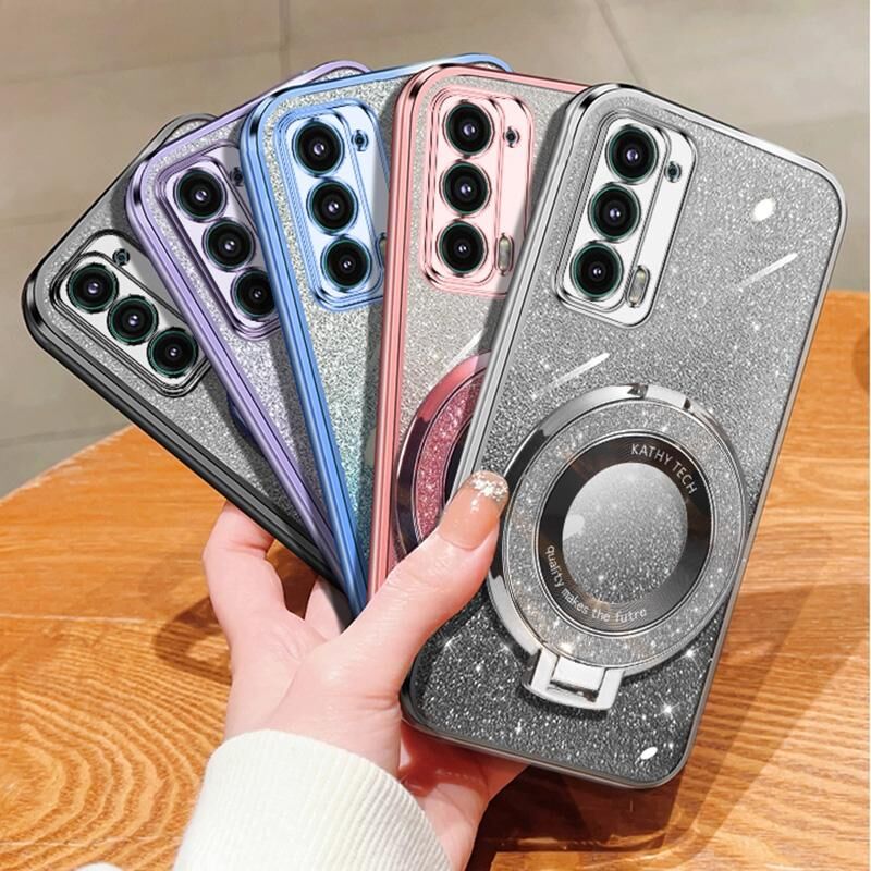 Για Motorola Edge 20 επιμεταλλωμένο βαθμιδωτή Glitter στρογγυλή θήκη TPU τηλέφωνο κάτοχος (μωβ)