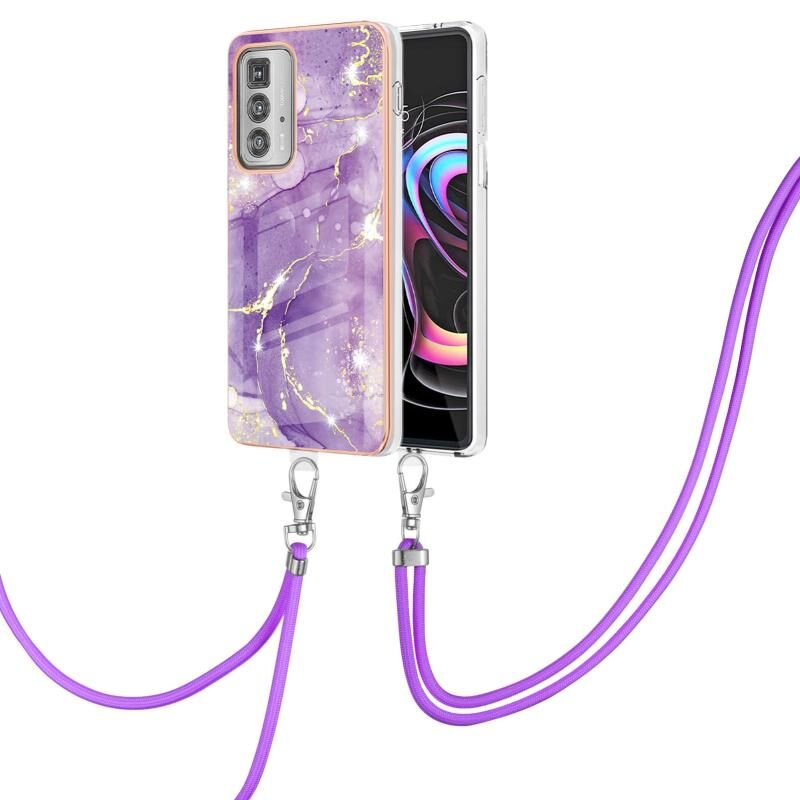 Θήκη για Motorola Edge 20 Pro με Γαλβανισμό, Μοτίβο Μαρμάρου IMD, Αντικραδασμική από TPU με Λουρί Λαιμού (Μωβ 002)