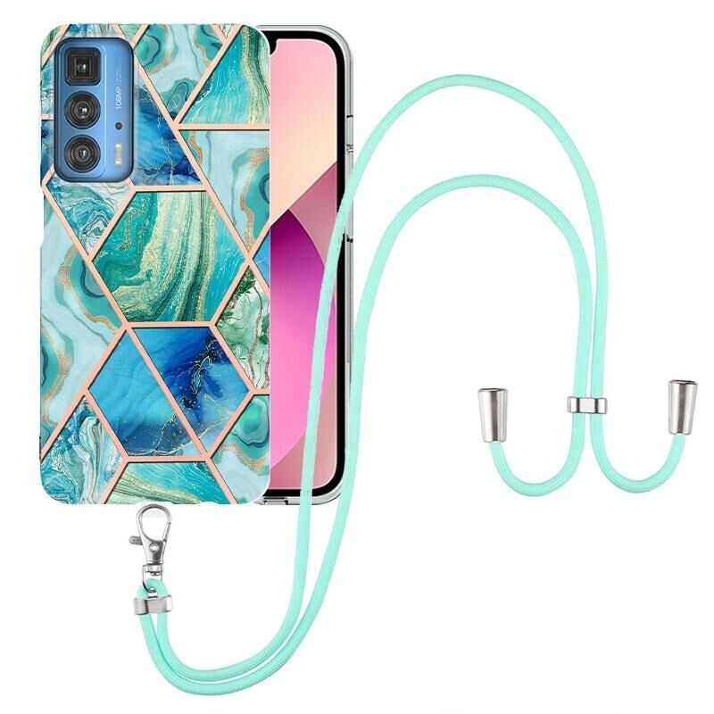 Θήκη κινητού τηλεφώνου TPU με ηλεκτρολυτική επιμετάλλωση και μαρμάρινο συνδυασμό για Motorola Edge 20 Pro με κορδόνι (Σκούρο Μωβ)