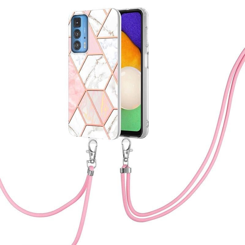 Θήκη κινητού τηλεφώνου TPU με ηλεκτρολυτική επιμετάλλωση και μαρμάρινο συνδυασμό για Motorola Edge 20 Pro με κορδόνι (Σκούρο Μωβ)