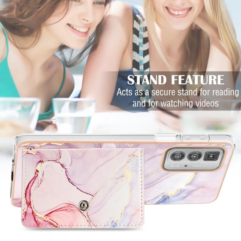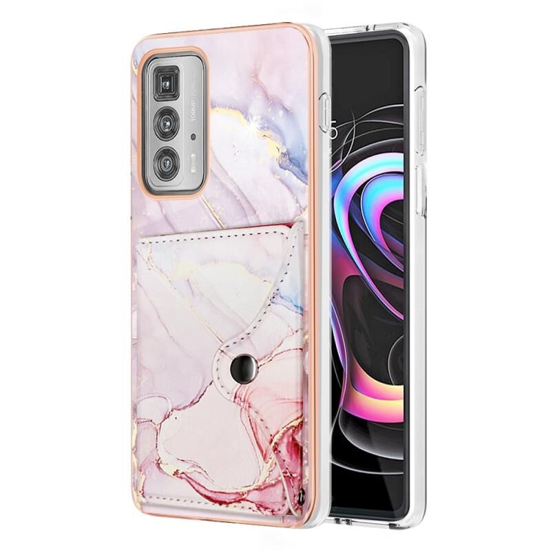Θήκη κινητού τηλεφώνου με υποδοχή κάρτας για Motorola Edge 20 Pro, σχέδιο μάρμαρου IMD (Ροζ χρυσός)