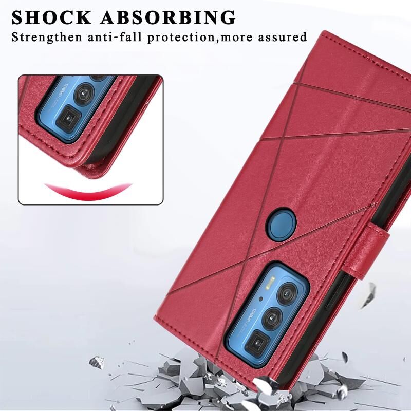 Θήκη τηλεφώνου Motorola Edge 20 Pro PU με ανάγλυφη υφή γνήσιου δέρματος (Μπλε)