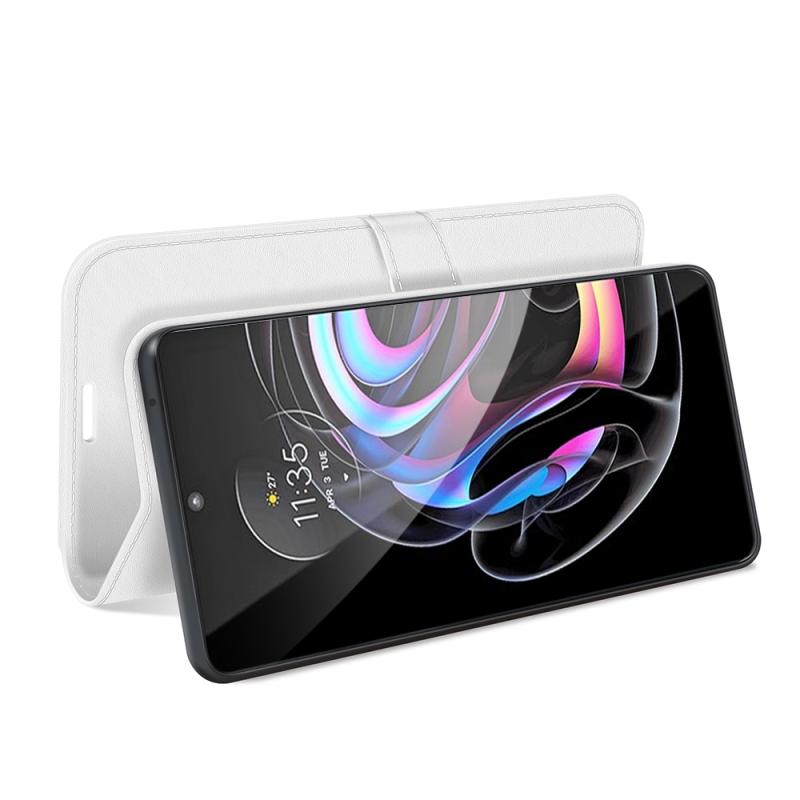 For Motorola Edge 20 Pro R64 Texture Single Horizontal Flip Phone Protective Case with Holder & Card Slots & Wallet& Photo Frame(White)