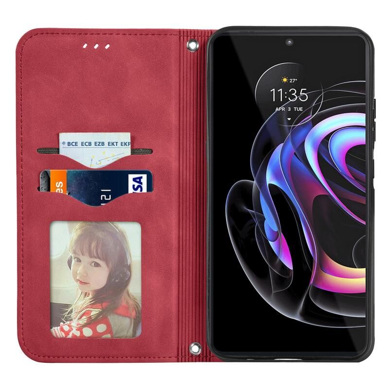 Για Motorola Edge 20 Pro Retro Skin Feel Business Μαγνητική οριζόντια Flip δερμάτινη θήκη με υποδοχές για κάρτες & πορτοφόλι & κορνίζα φωτογραφιών (κόκκινο)