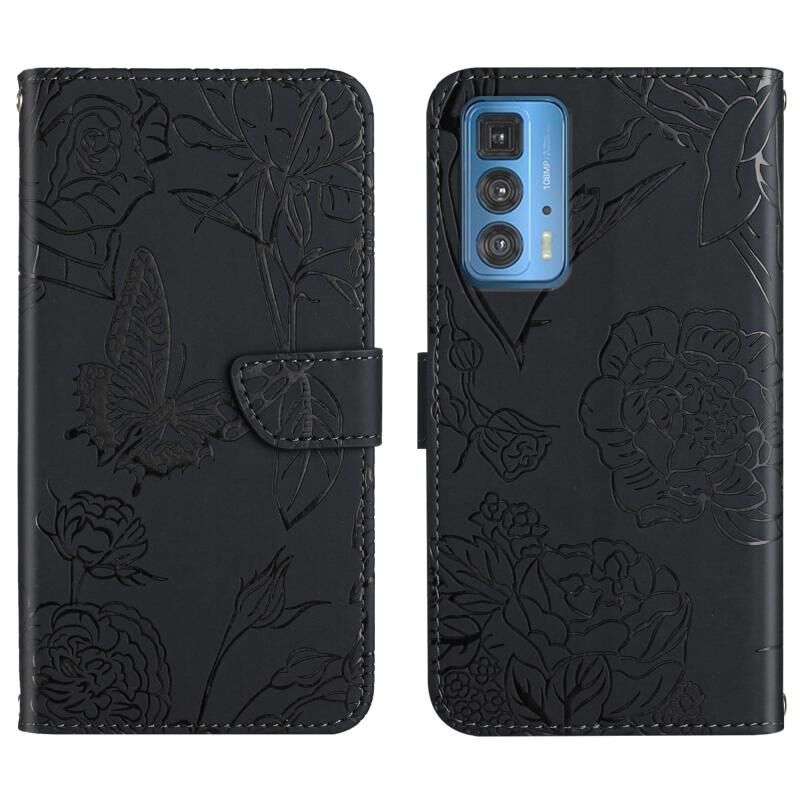 Θήκη κινητού τηλεφώνου από ανάγλυφο δέρμα για Motorola Edge 20 Pro, με σχέδιο πεταλούδας και παιώνιας (Κόκκινο)