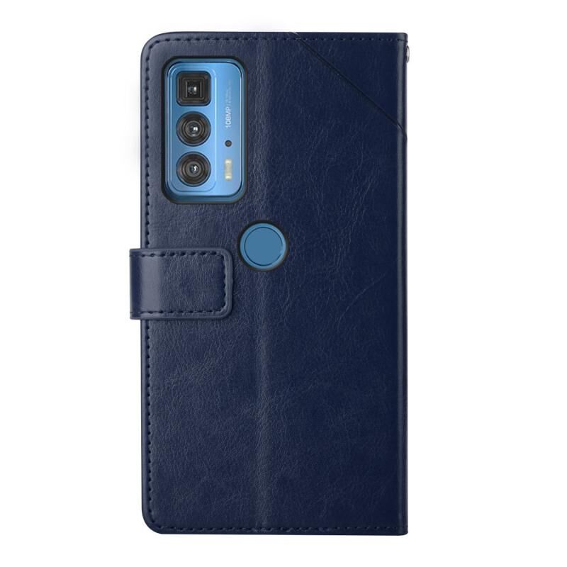 Για Motorola Edge 20 Pro Y Stitching Οριζόντια Flip δερμάτινη θήκη τηλεφώνου με θήκη & υποδοχές για κάρτες & πορτοφόλι & πλαίσιο φωτογραφιών (Μπλε)