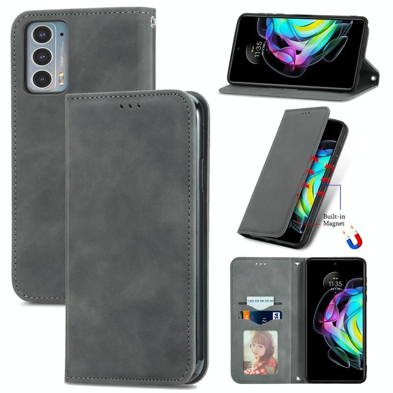 Για Motorola Edge 20 Ρετρό δέρμα Feel Business μαγνητική οριζόντια Flip δερμάτινη θήκη με κάτοχο & υποδοχές καρτών & πορτοφόλι & πλαίσιο φωτογραφιών (γκρι)