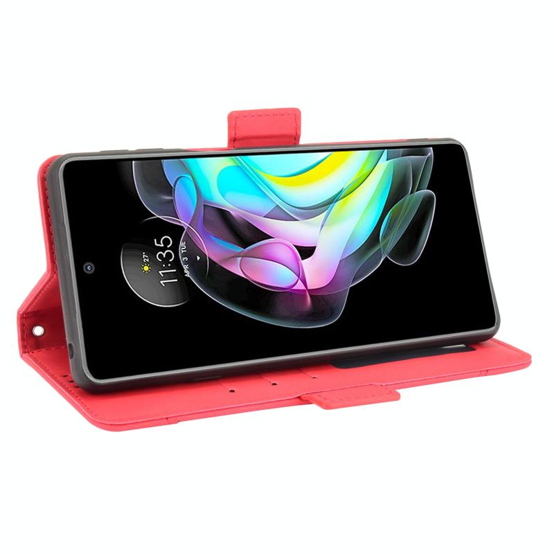 Θήκη δέρματος οριζόντιας αναδίπλωσης για Motorola Edge 20 με μοτίβο δέρματος μοσχαριού, με βάση στήριξης & υποδοχές καρτών & κορνίζα φωτογραφιών (Κόκκινο)