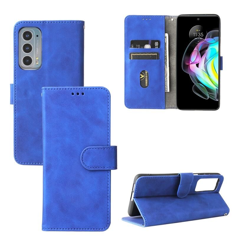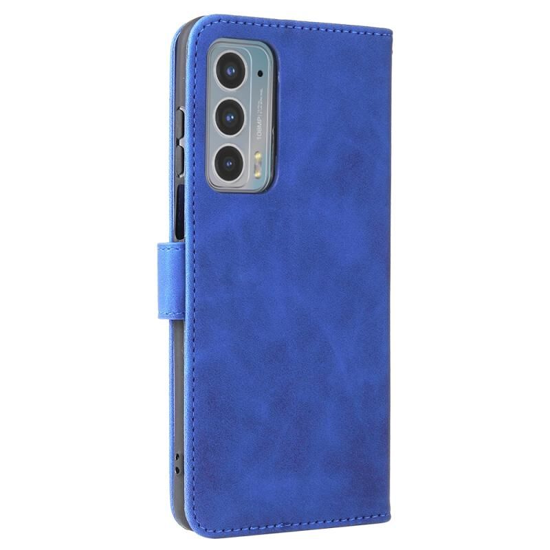 Για Motorola Edge 20 Αμιγές χρώμα δέρμα αίσθηση μαγνητική πόρπη οριζόντια Flip μοσχάρι υφή PU δέρμα υπόθεση με κάτοχο & υποδοχές καρτών & πορτοφόλι (Μπλε)