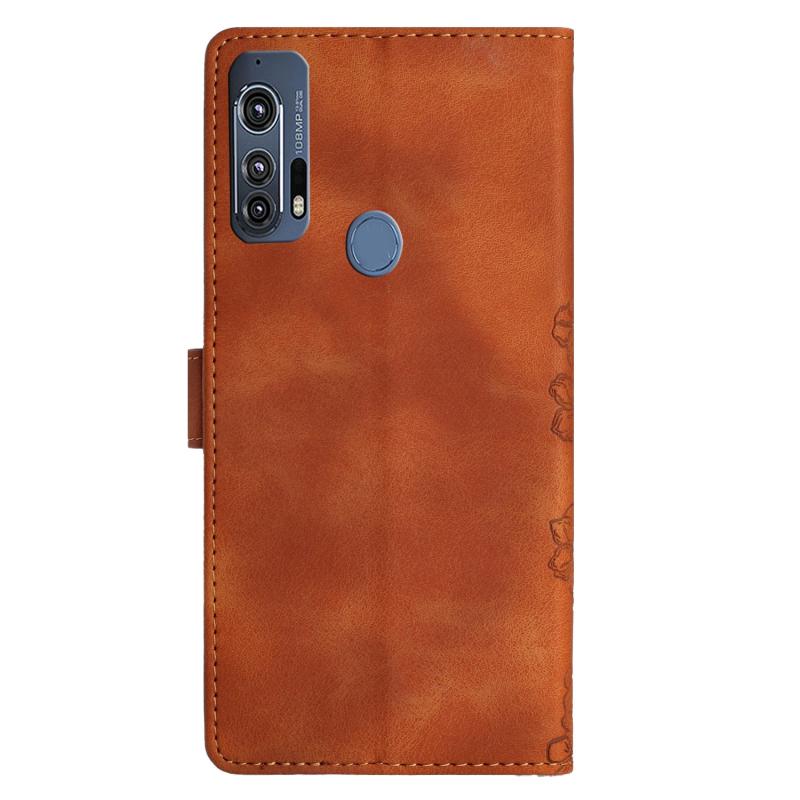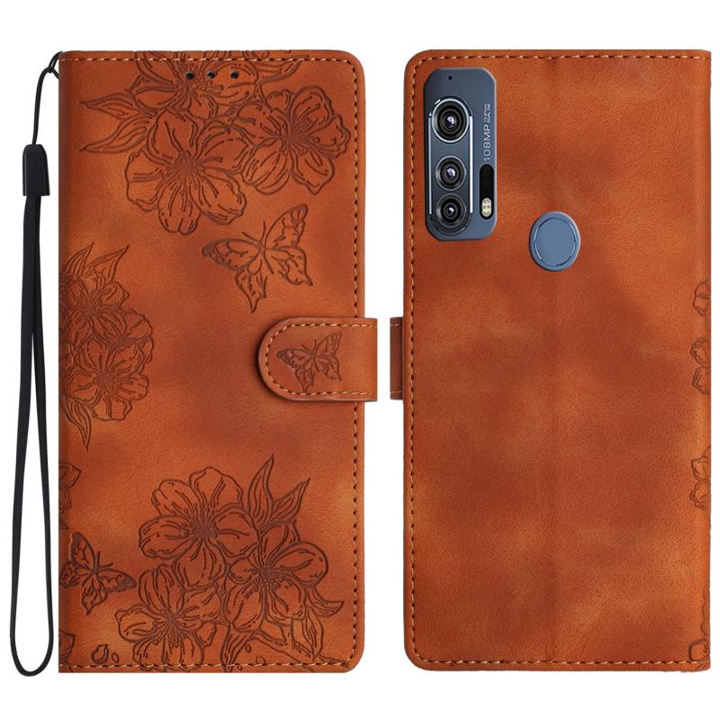 For Motorola Edge+ 2020 Cherry Blossom Butterfly Skin Feel Embossed PU Phone Case(Brown)