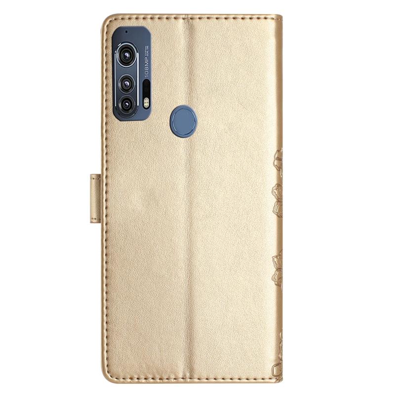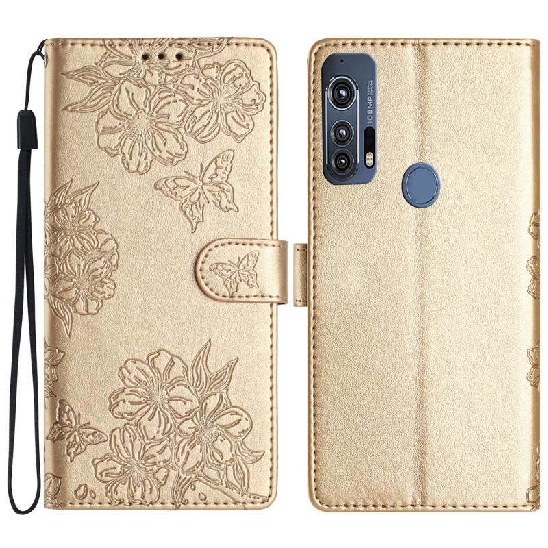 For Motorola Edge+ 2020 Cherry Blossom Butterfly Skin Feel Embossed PU Phone Case(Gold)